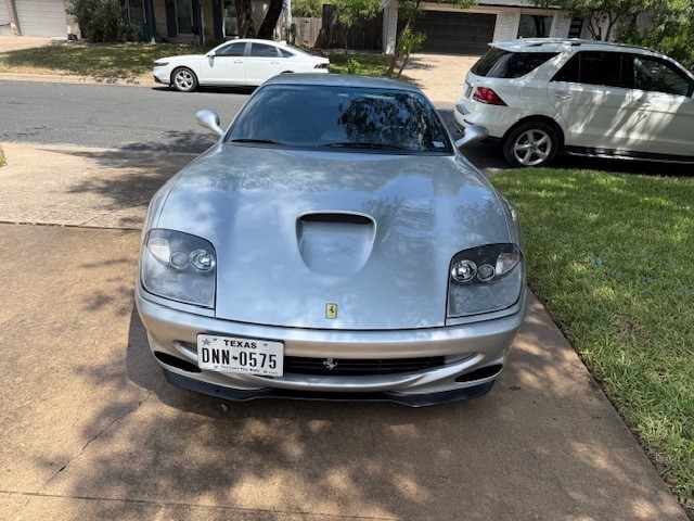 Two-owner Ferrari 550 Maranello finished in classic Argento Nurburgring over a black leather interior. This car has been meticulously cared for, always garaged in Austin, and comes with a full history of maintenance records. It was previously owned by a fellow Ferrari Club of America member as well. 2025 service is done, including new timing belts and belt bearings.